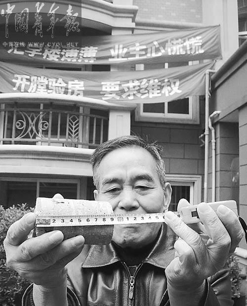 “結(jié)果出來(lái)就是沒(méi)有一個(gè)洞是合格的,當(dāng)我們拿著這個(gè)跟開(kāi)發(fā)商說(shuō)的時(shí)候,他們還說(shuō)樓是合格的,這只不過(guò)是瑕疵而已!毙旖ㄅd說(shuō)。