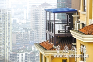 昨天中午,記者在該小區(qū)看到,“最牛吊腳樓”所在的5棟樓下拉著警戒線,幾個業(yè)主仰頭張望,說:“拆了我們就放心了!痹32樓該業(yè)主屋內(nèi),五六個工人正忙著鋸木頭柱子,藍色棚頂已拆除,雕花鐵藝欄桿和木頭桌椅也已移走,F(xiàn)場工人告訴記者,他們的拆除工作是從前天下午開始的。由于“吊腳樓”面積近20平方米,木頭柱子還用水泥焊住,“拆起來比修起來還麻煩!