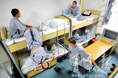 少林武僧團生活素描衣:青布長衣,青布長褲,手腳繃帶,黃布鞋。食素食,牛奶和豆制品是最富營養(yǎng)的“補品”。住求職公寓,十人間,上下鋪。行園區(qū)、宿舍,兩點一線。 (記者 張春雷)