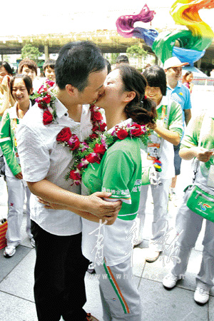 昨天一大早,李靜和施諾在閔行區(qū)民政局領(lǐng)取了結(jié)婚證書(shū),接著便又趕往世博園區(qū)。選在8月16日行禮,李靜表示并非刻意為之!拔腋改敢彩窃谄呦︻I(lǐng)證的,所以這個(gè)日子對(duì)我們特別有意義,很早就確定了!弊鳛樯虾9こ碳夹g(shù)大學(xué)的“白菜頭”,李靜這段日子以來(lái)一直都忙于世博志愿者的工作,自8月9日上崗以來(lái),李靜每天都是晚上11點(diǎn)才和“小白菜”一道回校,接著參加學(xué)校工作會(huì)議,之后才能休息。就是這次所用的結(jié)婚對(duì)戒,也是前一天晚上才抽空挑選的,“商場(chǎng)差點(diǎn)就關(guān)門(mén)了。”李靜笑說(shuō)。