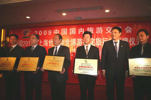 4月16日,國家旅游局和上海世博局在大連正式公布首批24家上海世博會境內(nèi)世博游指定旅行社名單,并向其授牌。