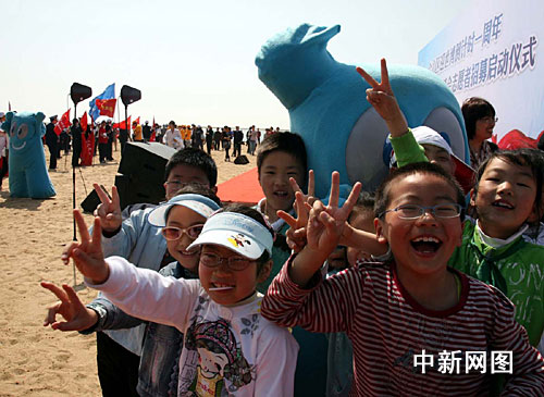 記者在現(xiàn)場(chǎng)看到,當(dāng)?shù)孛癖娸d歌載舞,他們有的舞起長(zhǎng)龍、有的打起腰鼓、有的更扭起歡快的秧歌,表達(dá)對(duì)2010年上海世博會(huì)的期盼心情和參與世博、奉獻(xiàn)世博、分享世博的美好愿望。而在世博會(huì)志愿者招募點(diǎn)前,報(bào)名和咨詢的人流如潮涌動(dòng),成了金山城市沙灘一道最亮的風(fēng)景。