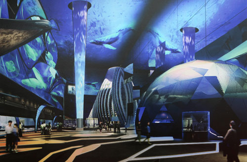 上海世博會(huì)主題館——未來館分為“昨日之夢(mèng)”、“理想與實(shí)踐”、“多種可能性”、“夢(mèng)想正在實(shí)現(xiàn)”四個(gè)部分。展館從“昨日之夢(mèng)”開始重溫人類的實(shí)踐過程,運(yùn)用影片、書籍和雕塑等方式展示從古至今人們對(duì)未來城市的幻想、設(shè)計(jì)與實(shí)踐,并向參觀者展現(xiàn)當(dāng)今的實(shí)踐成果和未來城市是建立在今日挑戰(zhàn)基礎(chǔ)上的理念。