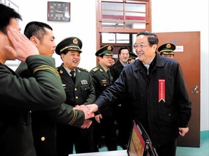 俞正聲和丁薛祥、陳豪、胡延照、王新奎、張學(xué)兵等來到武警上海市總隊世博安保任務(wù)部隊某部,實地察看值班室,聽取園區(qū)安保情況介紹;走進(jìn)部隊營房,與武警戰(zhàn)士親切交談,了解戰(zhàn)士們的訓(xùn)練、生活情況。聽到戰(zhàn)士們對生活保障表示滿意,俞正聲十分高興,他說:“春節(jié)即將來臨,請向你們的家人問好。今年迎辦世博的任務(wù)很繁重,相信通過大家的共同努力,我們一定能實現(xiàn)平安世博的目標(biāo)。”戰(zhàn)士們鏗鏘作答:“為世博爭光彩,為祖國作奉獻(xiàn),永遠(yuǎn)做黨和人民的忠誠衛(wèi)士!