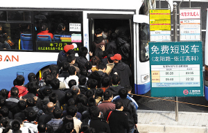 浦東公交此次共投放了48輛車,每分鐘發(fā)一班,但由于道路交通擁堵,幾乎車車滿載。駕駛員反映,前幾天從龍陽(yáng)路站到張江高科站只需十幾分鐘,今早卻要花40分鐘。芳甸路路口,進(jìn)入張江高科園區(qū)的第一個(gè)轉(zhuǎn)彎處,車輛遇紅燈往往要等上三輪才過(guò)得去。9時(shí)10分,記者在龍陽(yáng)路站看到,出來(lái)?yè)Q乘公交的人還是絡(luò)繹不絕。