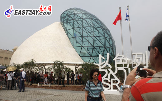 東方網(wǎng)記者今天上午在位于世博園A片區(qū)以色列館門外廣場(chǎng)看到,這里已經(jīng)是人山人海,由于今天陽光比較充足,現(xiàn)場(chǎng)很多人都打起了遮陽傘。記者看到,雖然以色列館外目前還沒有表演活動(dòng),館內(nèi)場(chǎng)景的布置和展示也和之前一樣,但是觀眾熱情依然非常高,排隊(duì)人群已經(jīng)把場(chǎng)館“團(tuán)團(tuán)圍住”。現(xiàn)場(chǎng)工作人員告訴記者,參觀者可能需要排隊(duì)一小時(shí)才能入館參觀。記者還在現(xiàn)場(chǎng)遇到不少以色列人,和大家熱情打招呼,他們一大早就專程趕到以色列館參加今天的活動(dòng)。
