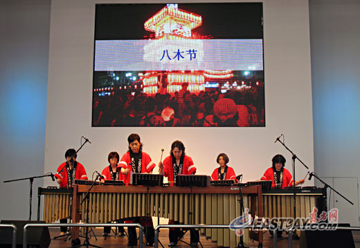 東方網(wǎng)記者向場(chǎng)上工作人員了解到,在日本產(chǎn)業(yè)館,每天都會(huì)上演四場(chǎng)音樂會(huì),時(shí)間分別為11:00、13:30、16:00和18:30,諸多來自日本本土的專業(yè)級(jí)音樂團(tuán)體將為觀眾帶來風(fēng)格迥異的音樂節(jié)目,且每周都有不同的樂團(tuán)前來獻(xiàn)演。在這里,藝術(shù)家們將用或民族、或世界的樂器演奏中日等國的民族樂曲,而本周的節(jié)目將由日本著名的馬林巴樂團(tuán)“北星會(huì)”出演。