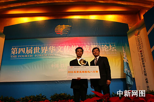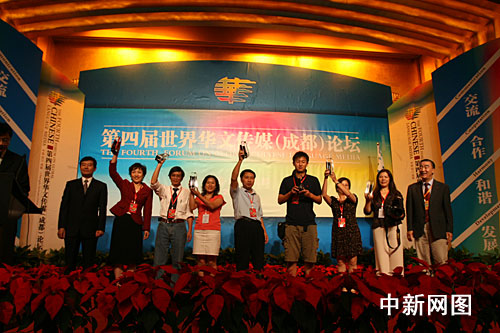 [主持人]: 獲得傳媒機(jī)構(gòu)貢獻(xiàn)獎(jiǎng)的有:美國(guó)僑報(bào)、新加坡聯(lián)合早報(bào)、香港鳳凰衛(wèi)視