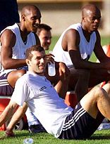 如果說四年前的世界杯得主法國隊靠水泄不通的防守奪得世界杯,本身還有缺點的話,那么就是他們的鋒線還有一些問題。不過,現(xiàn)在這個問題隨著亨利、特雷澤蓋以及阿內(nèi)爾卡的成熟,已經(jīng)得到了很好的解決。可以說,現(xiàn)在的法國隊已經(jīng)接近完美。在中場,攻擊型中場齊達內(nèi)和防守型中場維埃拉構(gòu)筑的"鋼腰",以及由德塞利、圖拉姆和利扎拉祖聯(lián)手的"鐵壁"則能充分顯示出法國隊的真正價值。正是這"力"與"巧"的諧調(diào)為沒有間歇的攻擊、攻守兼?zhèn)涞母邏鹤闱蛞约敖z絲相扣的組織能力提供了可能性。