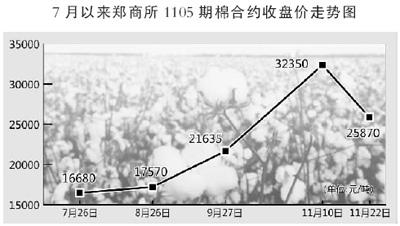 以鄭商所棉花期貨的主力合約——明年5月到期交割的棉花期貨為例,該期貨今年9月份開始一路暴漲,當(dāng)月棉價(jià)暴漲達(dá)20.83%,9月底報(bào)收2.16萬(wàn)元/噸;10月份再漲25.9%,報(bào)收2.72萬(wàn)元/噸,到11月初更是突破3萬(wàn)元大關(guān),11月10日的盤中最高價(jià)為3.37萬(wàn)元/噸,短短3個(gè)月時(shí)間里,期棉價(jià)格就漲了一倍。不僅棉花期貨,白糖、食用油等農(nóng)產(chǎn)品期貨都出現(xiàn)暴漲。