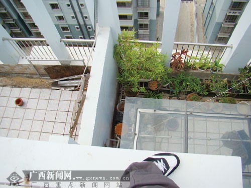 7月13日上午,記者再次來到該小區(qū)事發(fā)居民樓四棟一單元,在一名保安的指引下,乘坐電梯到了樓頂天臺。從天臺上可以看到,頂層兩戶居民家的露臺除了架設(shè)的擋雨玻璃層外,沒有任何防護設(shè)施,從天臺上就可以輕易翻入露臺。帶記者查看現(xiàn)場的保安說,小偷就是從乘電梯上天臺,然后跳入露臺潛入居民房內(nèi)的。