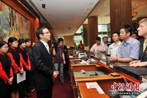 6月20日,重慶希爾頓酒店因股東涉黑,介紹、容留婦女賣淫,違法經(jīng)營和故意擾亂社會(huì)秩序,被重慶警方責(zé)令停業(yè)整頓。今日上午,重慶市公安局副局長高曉東帶領(lǐng)市局治安、經(jīng)偵、消防、打黑辦等部門相關(guān)負(fù)責(zé)人組成的檢查驗(yàn)收組,對重慶希爾頓酒店整改情況進(jìn)行檢查驗(yàn)收。