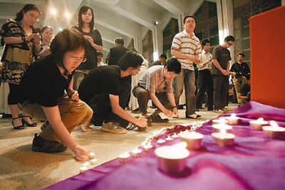 追思會昨晚8時舉行,神職人員在詩歌聲中步入禮堂,臺前放上梁錦榮讀書時的照片,由天主教香港教區(qū)副主教陳志明神父主持,教堂坐滿近600人,曾蔭權伉儷亦有出席,各人神情哀傷。