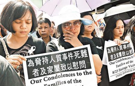 中新網(wǎng)8月30日電 據(jù)香港星島日報報道,香港特區(qū)立法會各政團發(fā)起“悼念菲律賓遇難港人”大游行的同時,多個菲律賓團體二十九日上午也舉行祈禱會表達哀傷,聚集近四百人,悼念馬尼拉挾持人質事件的死難者。菲律賓傭工協(xié)會發(fā)言人表示,菲律賓人與港人一樣對事件感到哀傷和憤怒,要求當局徹查事件。