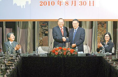 臺港兩會第一次聯(lián)席會議昨日上午在晶華酒店舉行,包括“陸委會正副主委”賴幸媛、高長、趙建民、策進會董事長林振國、香港財政司司長曾俊華、協(xié)進會主席李業(yè)廣、香港政制及內(nèi)地事務(wù)局局長林瑞麟等逾四十位兩會成員參加,達成七項合作共識。