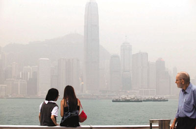 香港受“獅子山”外圍氣流影響,使空氣質(zhì)素持續(xù)欠佳,昨晨維港被煙霞籠罩,能見(jiàn)度低至4000米。香港環(huán)保署在中環(huán)路邊監(jiān)測(cè)站錄得空氣污染指數(shù),一度高達(dá)146的甚高水平,而銅鑼灣及旺角最高指數(shù)分別為134及108。環(huán)保署預(yù)期,有雨天氣有利污染物擴(kuò)散,相信空氣污染指數(shù)今天回落。