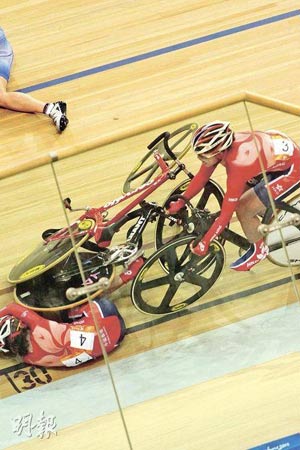 廣州亞運(yùn)女子場(chǎng)地記分賽,出現(xiàn)振奮人心的一幕。有“女版黃金寶”之稱的香港自行車選手黃蘊(yùn)瑤,向世人示范了什么才是鋼鐵意志,她在比賽中段遇上嚴(yán)重意外,身體更被單車兩度輾過(guò),但仍堅(jiān)忍肋骨骨折及肺氣腫傷痛繼續(xù)比賽,終為香港取得一面“血淚銀牌”。頒獎(jiǎng)后須坐輪椅離場(chǎng)的黃蘊(yùn)瑤不時(shí)激動(dòng)痛哭,令全場(chǎng)所有人動(dòng)容