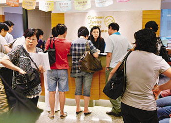 美國友邦保險(香港)公司位于金鐘、銅鑼灣及炮臺山的辦公室及客戶中心,17日繼續(xù)有不少客戶到場要求退保。也有市民怕虧掉保金或手續(xù)費,不想退保,轉(zhuǎn)而選擇提取保單的可支取現(xiàn)金。