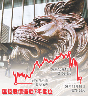中新網(wǎng)12月22日電 香港《文匯報(bào)》今日在要聞版報(bào)道,大笨象匯控沽壓未完,該股在美國的預(yù)托證券曾一度跌逾8%,低見69.5元,收市折合價(jià)為70.6元,雖險(xiǎn)守70元關(guān)口,但仍較港股上周五收市大跌7.7%,故市場人士預(yù)期,今日匯控在香港可能會(huì)重現(xiàn)11月時(shí)低位,即74.75元。至于油價(jià)回落,也拖累石油石化類股份表現(xiàn),中海油及中石油分別跌2.5%及0.57%,所以今日恒指可能會(huì)大幅低開逾300點(diǎn)。