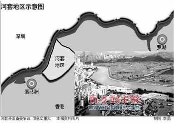 位于深港邊境的河套地區(qū)面積約一平方公里,該地區(qū)的開發(fā)一直是深港合作的焦點(diǎn)議題之一。前不久,香港特區(qū)政府決定分批釋放邊境絕大部分禁區(qū)土地作發(fā)展用途,而目前仍屬禁區(qū)的河套地區(qū),預(yù)計(jì)最快在2011年第三季解禁。