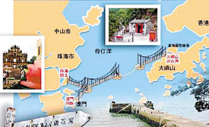 大橋最終方案的示意圖,中間部分是海底隧道。(圖片來源:廣州日報)