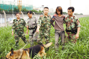 今年5月1日下午3時(shí)30分左右,廣東邊防六支隊(duì)十中隊(duì)警官蘇建飛正在執(zhí)勤,他通過監(jiān)控器嚴(yán)密監(jiān)視著邊防地段上的動(dòng)靜。突然,蘇建飛透過監(jiān)控屏幕發(fā)現(xiàn)4名男子鬼鬼祟祟的進(jìn)入了延芳路邊防地段,他立即通過對(duì)講機(jī)命令附近執(zhí)勤哨兵前往查看情況!罢咀!干什么的?”哨兵邊跑邊喊道。4名男子見邊防官兵追了過來,慌忙竄入邊界緩沖地帶的香蕉林里。此時(shí),香港打鼓嶺警署在接到廣東邊防六支隊(duì)的信息通報(bào)后,也從深圳邊界警方傳輸過來的視頻信息中發(fā)現(xiàn)了4名男子。最終,在深港邊界警方通力合作下,4名涉嫌非法越界男子全部落網(wǎng)。
