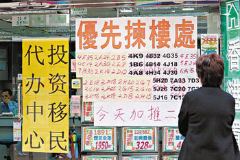 中新網(wǎng)7月23日電 據(jù)香港《星島日?qǐng)?bào)》報(bào)道,熱錢(qián)不斷流入,除帶動(dòng)股市外,香港樓市也同樣受惠,內(nèi)地資金紛紛南下投資,令樓市熱上加熱,最近更出現(xiàn)內(nèi)地投資移民團(tuán)頻買(mǎi)香港物業(yè),一批來(lái)自廣東省的投資客,日前自組來(lái)港看樓團(tuán),連購(gòu)入新界屯門(mén)7個(gè)中小價(jià)樓收租,作投資移民之用,涉資逾1000萬(wàn)元。