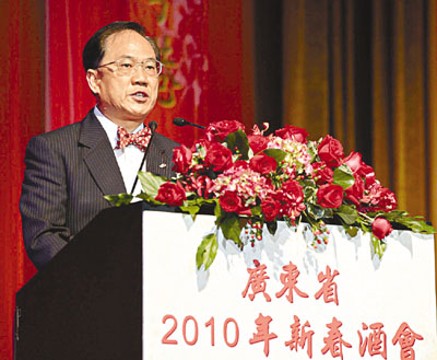 曾蔭權(quán)于酒會(huì)致辭時(shí)指出,香港和廣東的共融合作超過(guò)30多年,從最初集中于經(jīng)濟(jì),到近年遍及不同領(lǐng)域,包括基建、教育、環(huán)保等,的確碩果累累,卓有成效。這是兩地政府、商界及民間團(tuán)體同心同德、長(zhǎng)期努力的成果。