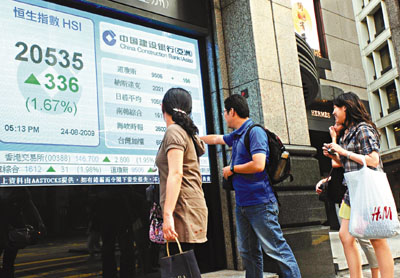 中新網(wǎng)8月25日電 據(jù)香港《文匯報(bào)》報(bào)道,受惠美國(guó)樓市數(shù)據(jù)回暖,及美聯(lián)儲(chǔ)主席伯南克樂觀經(jīng)濟(jì)評(píng)論,亞太股市24日全在線揚(yáng),帶動(dòng)全球股市創(chuàng)10個(gè)月高位。在外圍日股、A股造好下,帶動(dòng)港股向好,恒指全日收?qǐng)?bào)20535.9點(diǎn),升336.9點(diǎn),升幅1.7%,重上10天線,成交627億元。