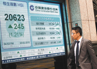 中新網(wǎng)2月24日電 據(jù)香港《文匯報(bào)》報(bào)道,財(cái)政預(yù)算公布前,港股反復(fù)造好,23日早段雖跟隨外圍低開,最多跌260點(diǎn),但賣地成績(jī)理想繼續(xù)刺激香港地產(chǎn)股上升,帶動(dòng)港股由跌轉(zhuǎn)升,加上傳聞迪拜世界再獲注資,消息利好匯控,恒指最多曾倒升330多點(diǎn),收市報(bào)20623點(diǎn),升245.7點(diǎn),升幅1.2%,是2月3日以來(lái)近三周的最高收巿。