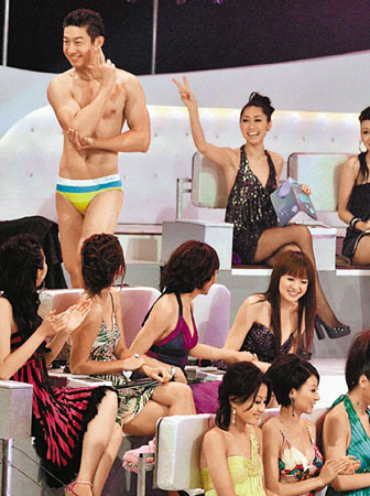 各位泳裝港男上到評判席拉票,其中以4號最主動跪在地上獻吻,至于今年性感的女評判們,可能獲無線高層叮囑過不能與港男有身體接觸,個個表現(xiàn)得好斯文,沒有去年伍詠薇吸氧氣的奇景。最后兩輪比賽,結(jié)果由1號陳偉洪以915票大比數(shù)拋離對手,7號許家杰以443票僅次其后。