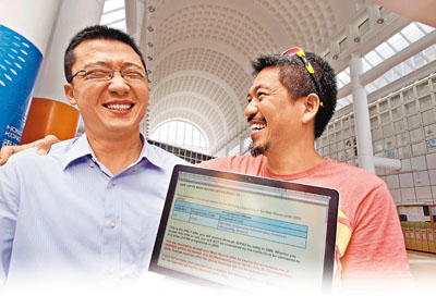 29日是聯(lián)招發(fā)榜的大日子,正在會(huì)計(jì)師樓做實(shí)習(xí)生的黃榮新趁午膳時(shí)間外出,在傳媒見(jiàn)證下,與恩師陳兆焯一同上網(wǎng)查閱聯(lián)招結(jié)果。盡管已獲樹(shù)仁大學(xué)工商管理課程錄取,黃榮新仍難掩緊張心情,指著計(jì)算機(jī)屏幕的手指都在顫抖,甚至幾次點(diǎn)擊聯(lián)招編號(hào)都出錯(cuò)。