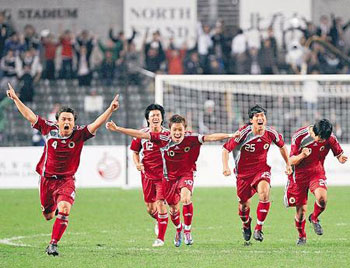 中新網(wǎng)12月11日電 據(jù)香港《明報》報道,在特首曾蔭權(quán)及9482名觀眾見證下,香港足球締造歷史,10日晚苦戰(zhàn)120分鐘與朝鮮踢成1﹕1,互射12碼香港男足勝5﹕3,歷來首度在綜合運(yùn)動會晉身決賽,并確保有一面獎牌,12日下午5時將在香港大球場上演決賽,與日本爭奪金牌。
