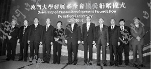 澳門社會知名人士何鴻燊、曹其真,以及呂志和基金有限公司、澳門霍英東基金會分別向澳大發(fā)展基金會捐款3000萬澳門元,款項將作為基金會的永久性基金,由基金會管理,并僅作支持澳大發(fā)展之用。除前立法會主席曹其真親自捐贈外,澳門博彩股份有限公司董事蘇樹輝代表何鴻燊,呂志和之子呂耀東代表呂志和基金有限公司,澳門霍英東基金會主席霍震寰代表該基金會向澳大捐贈有關款項。
