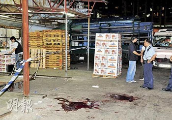 事發(fā)在22日晚約10時,2名男子與一批人在果欄談判,其后起爭執(zhí),2名男子被多人持刀追砍,身受重傷,其中1人其后死亡,另1人左手手腕和左腰有刀傷,敷藥后已經出院。