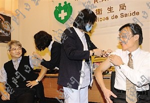第一階段新流感疫苗接種啟動(dòng)儀式23日上午10時(shí)在衛(wèi)生局行政樓地下大禮堂舉行,衛(wèi)生局長(zhǎng)李展?jié)、副局長(zhǎng)鄭成業(yè),傳染病防制暨疾病監(jiān)測(cè)部協(xié)調(diào)員林松,社工局長(zhǎng)葉炳權(quán),教青局長(zhǎng)蘇朝暉出席。隨后,社會(huì)文化司司長(zhǎng)辦公室主任譚俊榮、李展?jié)櫟葏⑴c疫苗接種。