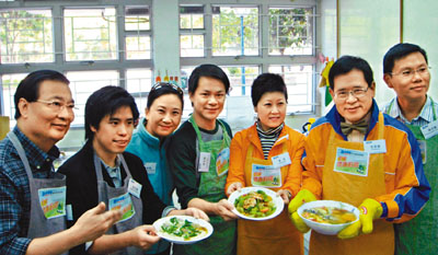 中新網(wǎng)12月14日電 據(jù)香港《文匯報(bào)》報(bào)道,港府問責(zé)官員及立法會議員論政不出奇,親身示范政策理念又如何?香港民建聯(lián)婦女事務(wù)委員會13日邀請環(huán)境局副局長潘潔、立法會議員譚耀宗及陳克勤等,一齊煮食健康菜式,推廣低碳健康廚房,做得也似模似樣。