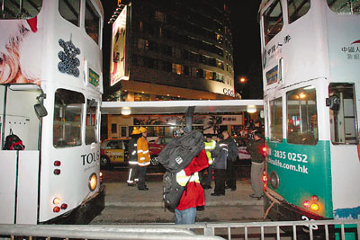中新網(wǎng)12月28日電 據(jù)香港《文匯報(bào)》報(bào)道,27日晚氣溫驟降兼下冷雨,兩輛先后于跑馬地開(kāi)出的電車,駛至皇后大道東對(duì)面時(shí),疑因天雨路滑,后車收剎不及,撞撼前行正進(jìn)站電車,釀成共12名乘客及1名車長(zhǎng)受傷,須多輛救護(hù)車將各人送院治理。