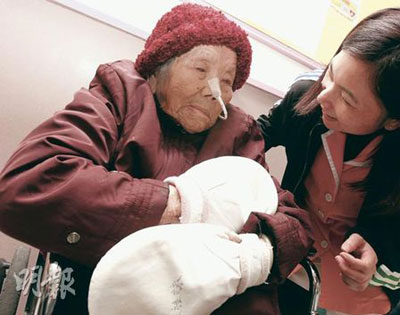 張婆婆人稱“桂妹”,是客家人,住在大埔。記者19日到老人院探望桂妹時(shí),由于沒有其親屬在場(chǎng),院方只允許記者查看桂妹入院時(shí)填寫的身份證出生日期。按入院紀(jì)錄,她身份證上印上的出生日期是1893年1月4日,即生于清朝光緒19年,由于舊派中國人只記農(nóng)歷生日,1月4日實(shí)指農(nóng)歷正月初四。