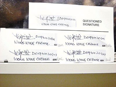 龔家證人上周作供完畢,法庭15日開始傳召專家證人作供。華懋慈善基金傳召的英國筆跡專家Robert Radley,分析王永祥提供的35個簽名樣本,其中20個是王永祥特意為案件而簽,其余15個則是他于1995年至2007年文件中的簽名。Robert Radley將簽名樣本跟“06遺囑”中的簽名比較,發(fā)現(xiàn)有10多個不同處,他15日在法庭內(nèi)利用顯微鏡及投射機(jī),將不同處逐個投射到大熒幕解釋。