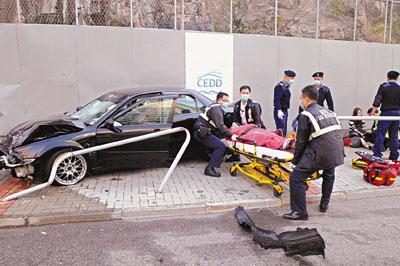 司機(jī)和女友人僅手腳輕傷,附近居民見狀報(bào)警,救護(hù)員接報(bào)到場,證實(shí)男教師已死亡,隨即用帳篷覆蓋尸體,另將1男2女傷者送院救治。警方封鎖現(xiàn)場調(diào)查,特區(qū)政府化驗(yàn)師到場搜證,發(fā)覺現(xiàn)場只有很短的上臺(tái)剎車胎痕,肇事私家車事后被拖走檢驗(yàn)。