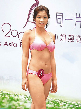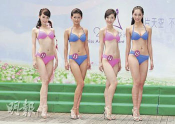 中新網(wǎng)10月15日電 據(jù)香港《文匯報》報道,2009年亞洲小姐選舉候選佳麗14日在香港荃灣一間酒店以泳裝在池畔與傳媒見面,但2號王,幓忌蠚夤苎兹毕挥18位佳麗亮相。大會安排佳麗穿上比基尼泳裝,各佳麗身裁都顯得突出。