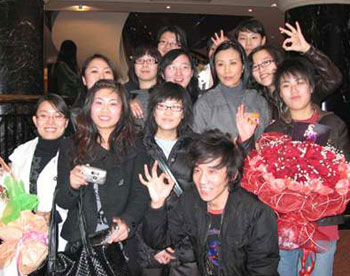 9日下午,汪明荃在北京貴賓樓出席政協(xié)小組討論會時(shí),10多個(gè)來自北京和天津的年輕影迷在會議室的門外守候著。當(dāng)汪明荃步出會議室后,一眾影迷一涌而上,又送花又索取簽名又要求合照。汪明荃一一滿足影迷的要求,令所有影迷欣喜若狂。