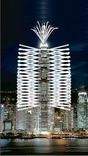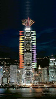 “幻彩詠香江”匯演主要是平面,而是次則要利用國(guó)金高度,帶動(dòng)其余17幢配合表演的大廈,因分半鐘的匯演會(huì)看到五光十色的煙火,在國(guó)金外墻又上又落,或成扭曲狀的特別效果。
