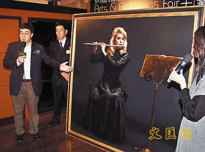 中新網(wǎng)2月28日電 已故中國(guó)當(dāng)代杰出油畫家陳逸飛遺作,時(shí)值約2,100萬港元的《長(zhǎng)笛手》,將于5月23日至26日在港首次公開展出。作品中背景和主體都是大片黑色,但陳逸飛以光影,成功營(yíng)造出層次和立體感,盡顯功力。(彭子文)