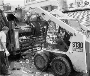 澳門垃圾專營公司動用鏟泥車清理街邊垃圾。(圖片來源:澳門日報)