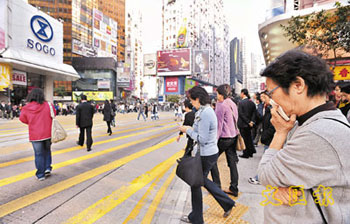 煙霧籠罩香江,環(huán)保署三個(gè)路邊空氣質(zhì)素監(jiān)察站包括中環(huán)、銅鑼灣及旺角錄得逾100的甚高污染水平,截止10日傍晚6時(shí),除中環(huán)空氣污染指數(shù)一度錄得119,銅鑼灣及旺角分別曾錄得114及106,均屬甚高水平,其它地區(qū)的一般監(jiān)測站,空氣污染水平維持在偏高水平。
