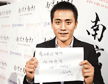去年發(fā)生四川地震時(shí),陸川和《南京!》的劇組人員在長春拍攝電影中,得知地震發(fā)生后,高圓圓、秦嵐以及整個(gè)劇組都有捐錢,一方有難八方支持。相隔一年,見到四川的同胞漸漸走出陰霾,“在此我希望對(duì)他們說:‘沒有什么可以阻擋我們對(duì)生命的向往,地震一周年,祝四川的同胞身體健康,快樂!’”