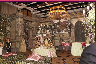 16日的喜宴共分兩場(chǎng),下午是邀請(qǐng)李家誠兩公婆已有小孩子的朋友及其大女的同學(xué),晚上正式宴請(qǐng)親友及公司同事。16日下午一早有近百傳媒在酒店門外等候采訪,由于天氣酷熱,李家很細(xì)心放置冰箱給傳媒享用冰水,之后由公關(guān)安排傳媒拍攝位于四樓的飲宴場(chǎng)地,場(chǎng)內(nèi)由瑞士及意大利設(shè)計(jì)師Silvio Berge負(fù)責(zé),設(shè)計(jì)成一個(gè)Secret Garden歐洲式花園布置。