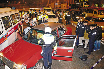 中新網(wǎng)1月25日電 香港一名司機(jī)涉嫌以偷來(lái)的士做無(wú)本生意多時(shí),24日晚在銅鑼灣因沖紅燈惹起交警注意后逃走,結(jié)果掀起一幕由港島追到九龍全長(zhǎng)22公里的警匪飛車(chē)追逐戰(zhàn),賊的士后于東隧九龍出口收費(fèi)廣場(chǎng)撞毀一部電單車(chē)及一部警車(chē)后始停下,亡命司機(jī)當(dāng)場(chǎng)束手就擒,但共有7名警民受傷送院,包括的士司機(jī)。
